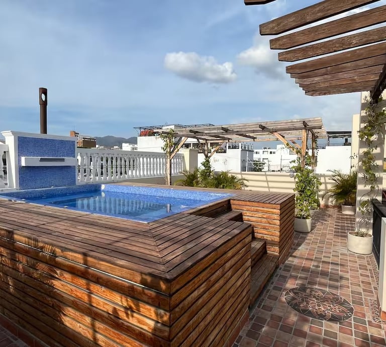 Hermoso apartasuite en Casa Sisiguaca 🏡, ubicado en el Centro Histórico de Santa Marta, a pasos del Parque de los Novios y la playa 🌊. Ideal para descansar y disfrutar la ciudad. Cuenta con piscina en la azotea, colchones y almohadas de primera calidad para un sueño reparador 🛏️. Espacio moderno, cómodo y tranquilo. ¡Reserva y vive una experiencia inolvidable en el corazón de Santa Marta! ✨