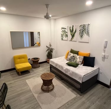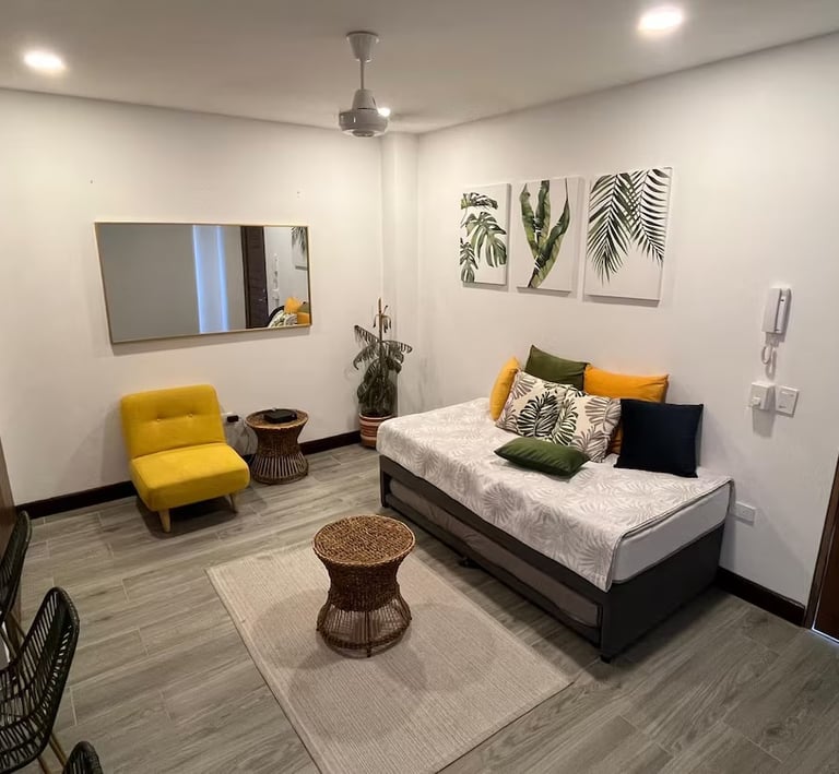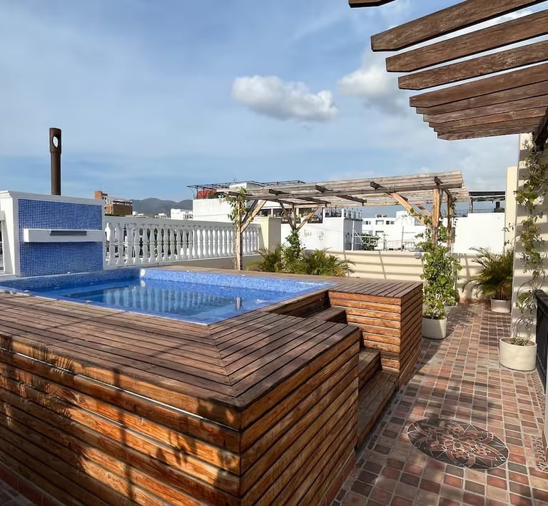 Hermoso apartasuite en Casa Sisiguaca 🏡, ubicado en el Centro Histórico de Santa Marta, a pasos del Parque de los Novios y la playa 🌊. Ideal para descansar y disfrutar la ciudad. Cuenta con piscina en la azotea, colchones y almohadas de primera calidad para un sueño reparador 🛏️. Espacio moderno, cómodo y tranquilo. ¡Reserva y vive una experiencia inolvidable en el corazón de Santa Marta! ✨